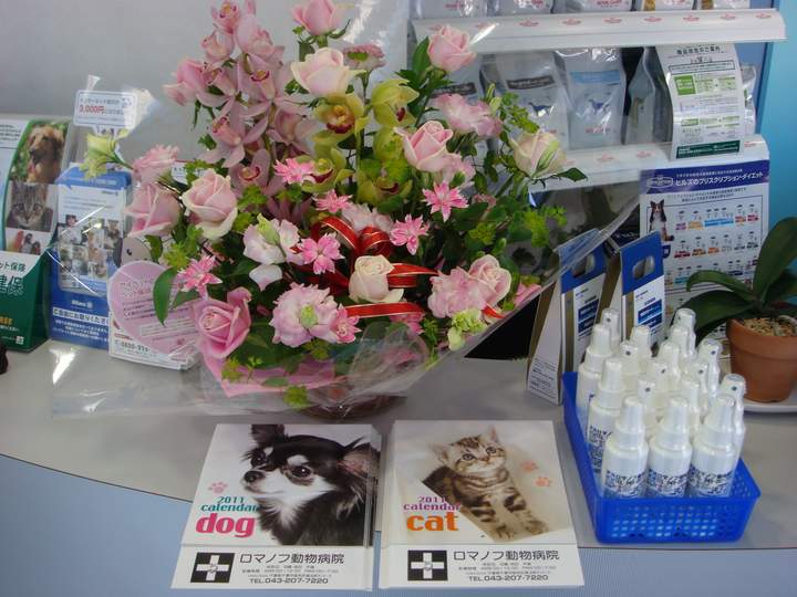ちなみに、隣に写っているお華は、神経学診療でお世話になっている先生と他の病院のスタッフがわざわざ当院に遊びに来ていただき、その際に頂いた物です。開業1周年という明目で頂きました。覚えていて頂いて、泣けます・・・。ありがとうございました、これからもよろしくお願いいたします。