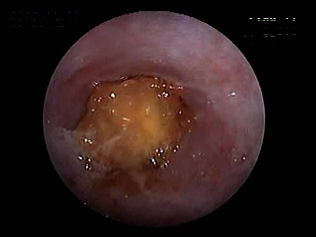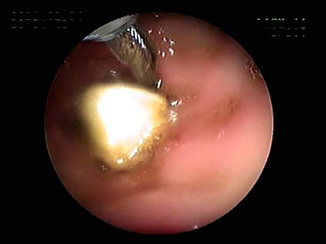 写真は、押し込んでいる時と、押し込んで胃の入り口が閉まる瞬間です(入り口が炎症を起こして赤くなっています)。