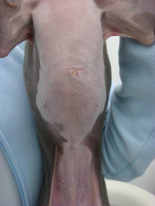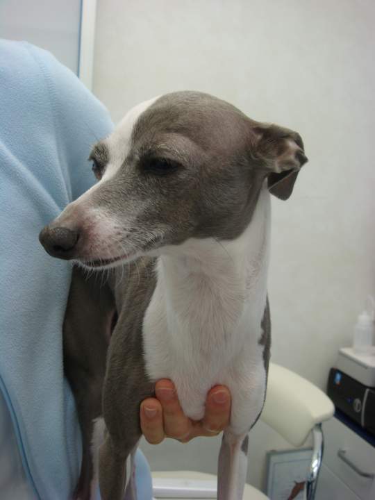 寒さが厳しい日が続いたある日のことでした。当院の看板犬のレモン(イタリアングレーハウンド)の皮膚が赤くなっていました。「あれ、皮膚炎かな」と思い、治療を開始。その日の夜、クッションベッドを一生懸命掘っている音がしました。寝るところを馴らしているのかな~と思ってみていたら、なんと!クッ ションベッドの上のクッションをどけて、さらにベッドの底面布の破れた穴を作り広げていました。そして、直接ペットヒーターの上に伏せて「あったか~い!」と満足げなおももち。皮膚炎の原因がそこで判明しました。すぐに、クッションがとれないタイプのベッドに交換しました。皮膚が薄い種類は、どうしても熱が皮膚に直接伝わり、熱くない程度の温度でも長時間接触していると、こういう「低温やけど」になってしまいます。レモンよ、ごめんね。