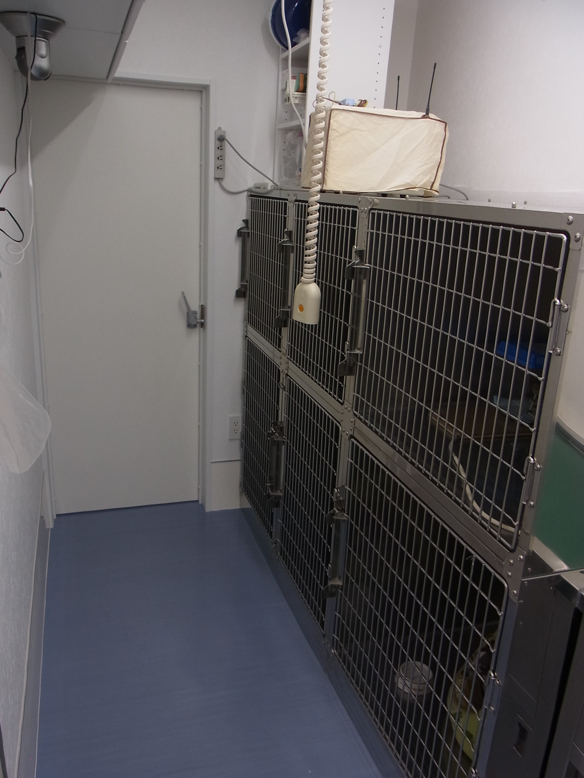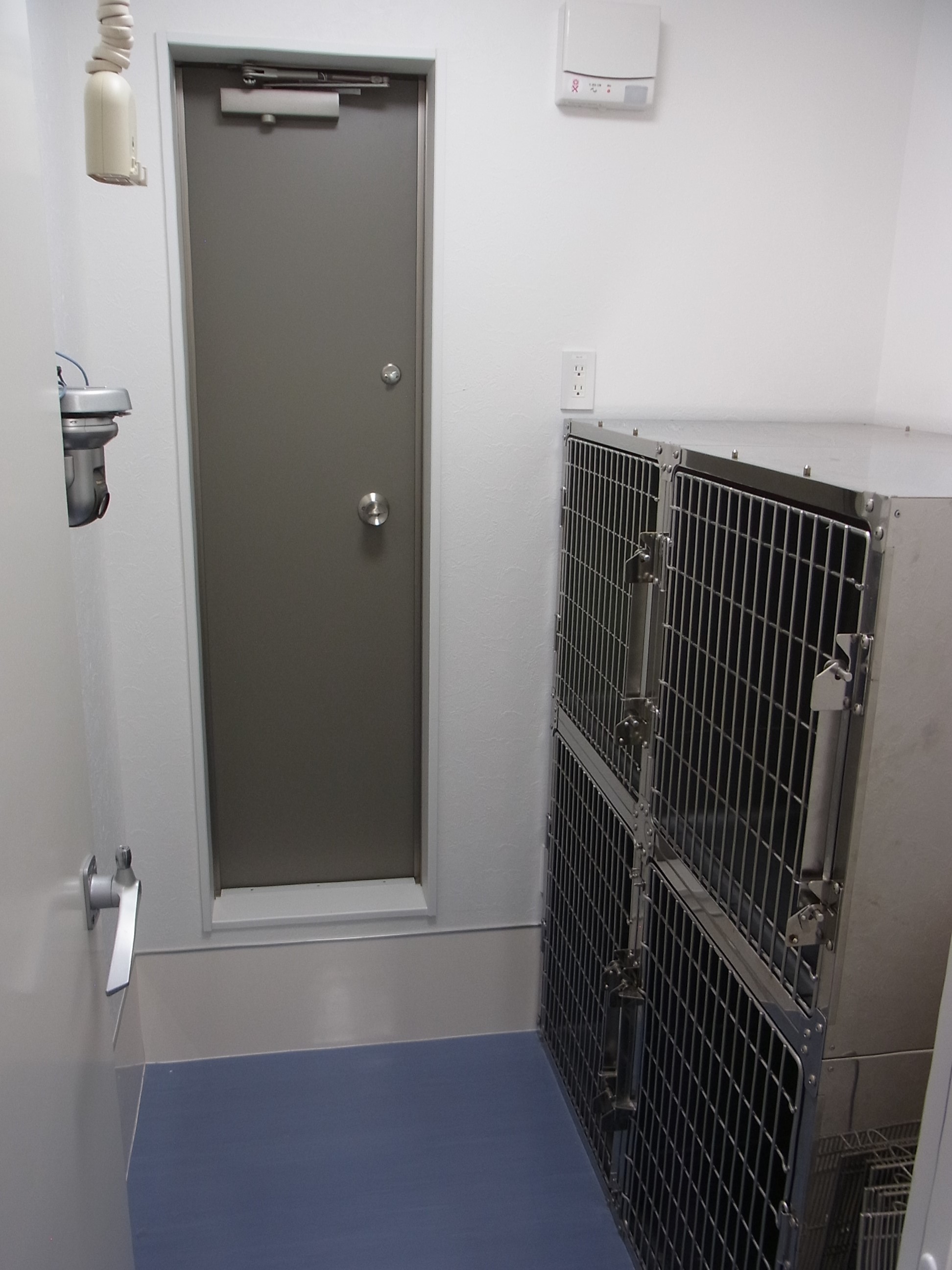 ネットワークカメラにて、部屋の外から、ストレスを与えることなく確認することができます。また、院外からのモニタリングも可能です。