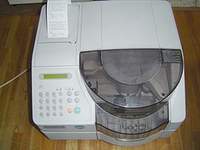 血糖値や肝臓・腎臓の数値などが院内で迅速に測定できます。ほとんど人間と同じ項目を測ります。また、最近ではCRP(C反応性蛋白)も測定できるようにな りました。夜間救急などでも、即時診断に一役買っています。人間では、救急病院以外は外注で1週間後に結果をもらうということが多いですが、動物病院は、 そうはいきません。具合が悪くなってくるペットさんは、即診断が求められていることがほとんどです。