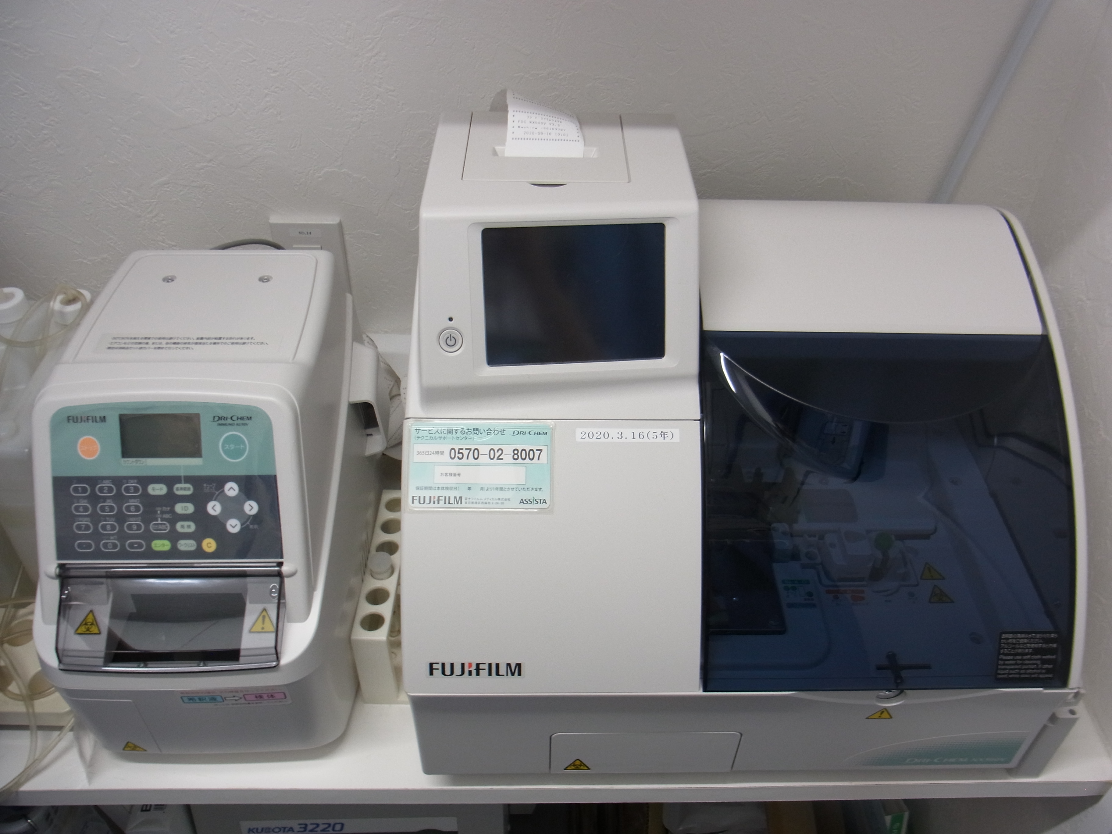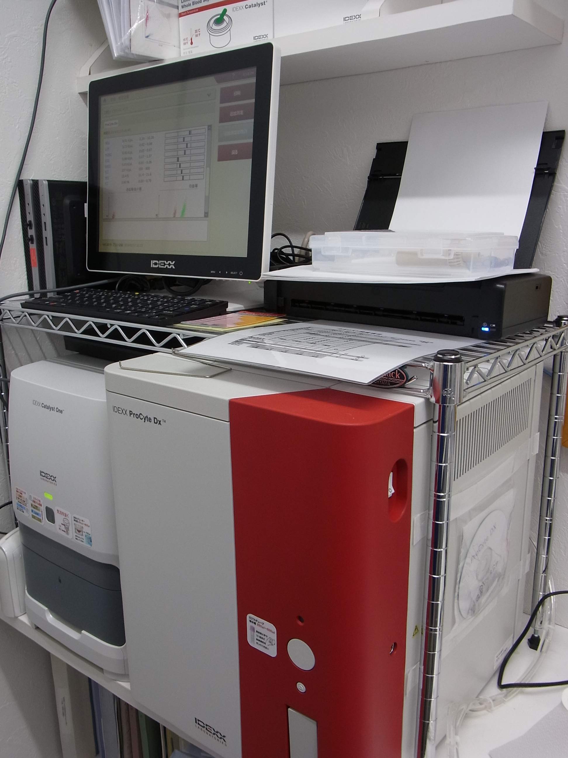 血液化学検査機器は、測定時間が短縮され8分間(従来は15分以上)で15項目程度を測定できます。また、ホルモン測定機能(甲状腺ホルモン:T4)、糖尿病のコントロールの指標であるフルクトサミン、腎疾患の指標になるUPCも測定が可能になりました。院内でタイムリーに結果をお伝えできるようになりました。いろいろご提案できる内容となっております。病気の早期発見、早期治療に努めたいと思います。