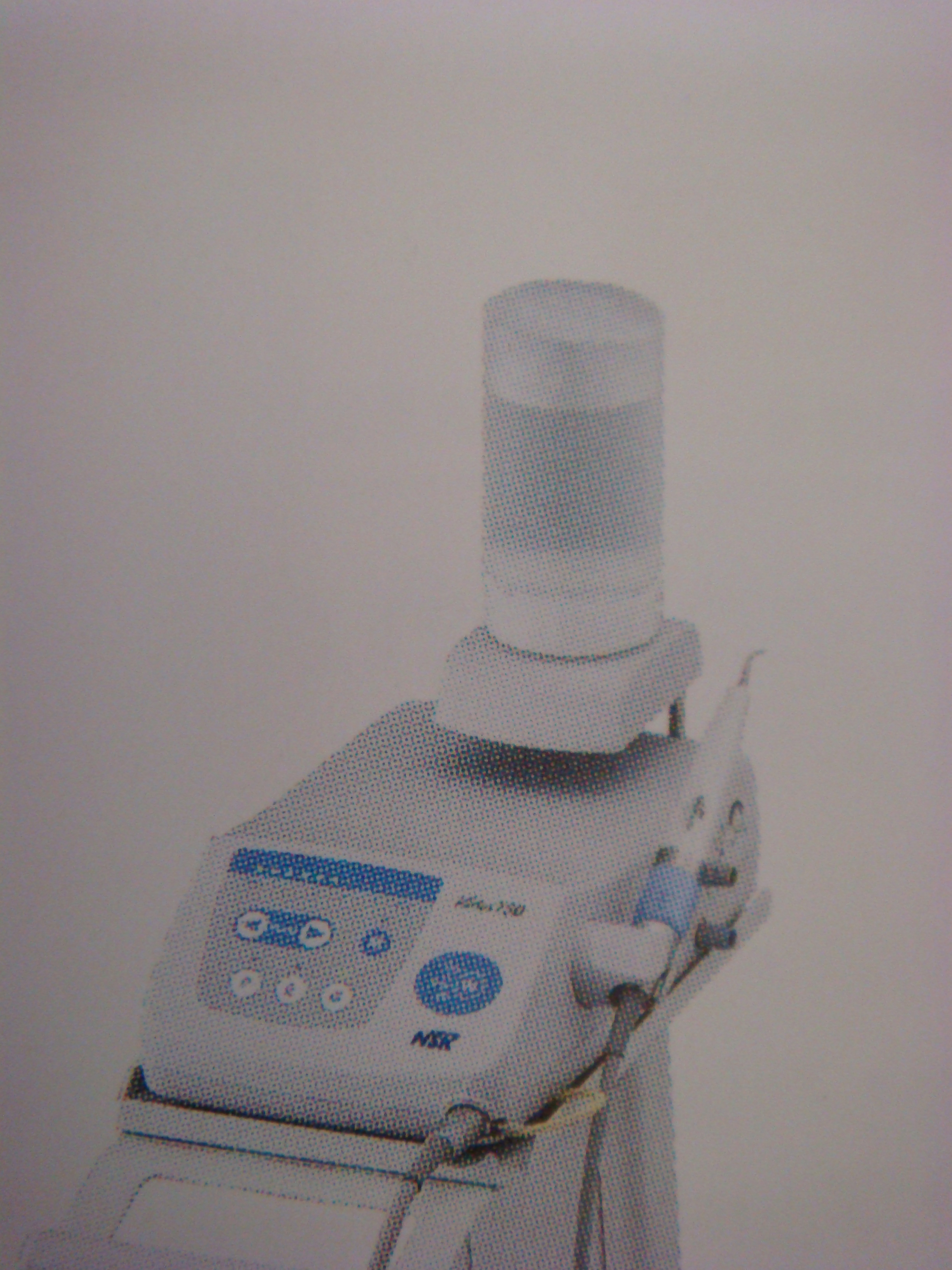 これは、最新機種になり、今までバッテリー式だったものが、LEDの技術で乾電池式になり、容易にまた安定した検査が短時間で可能になりました。ノーベ ル賞受賞者には感謝です(笑)。